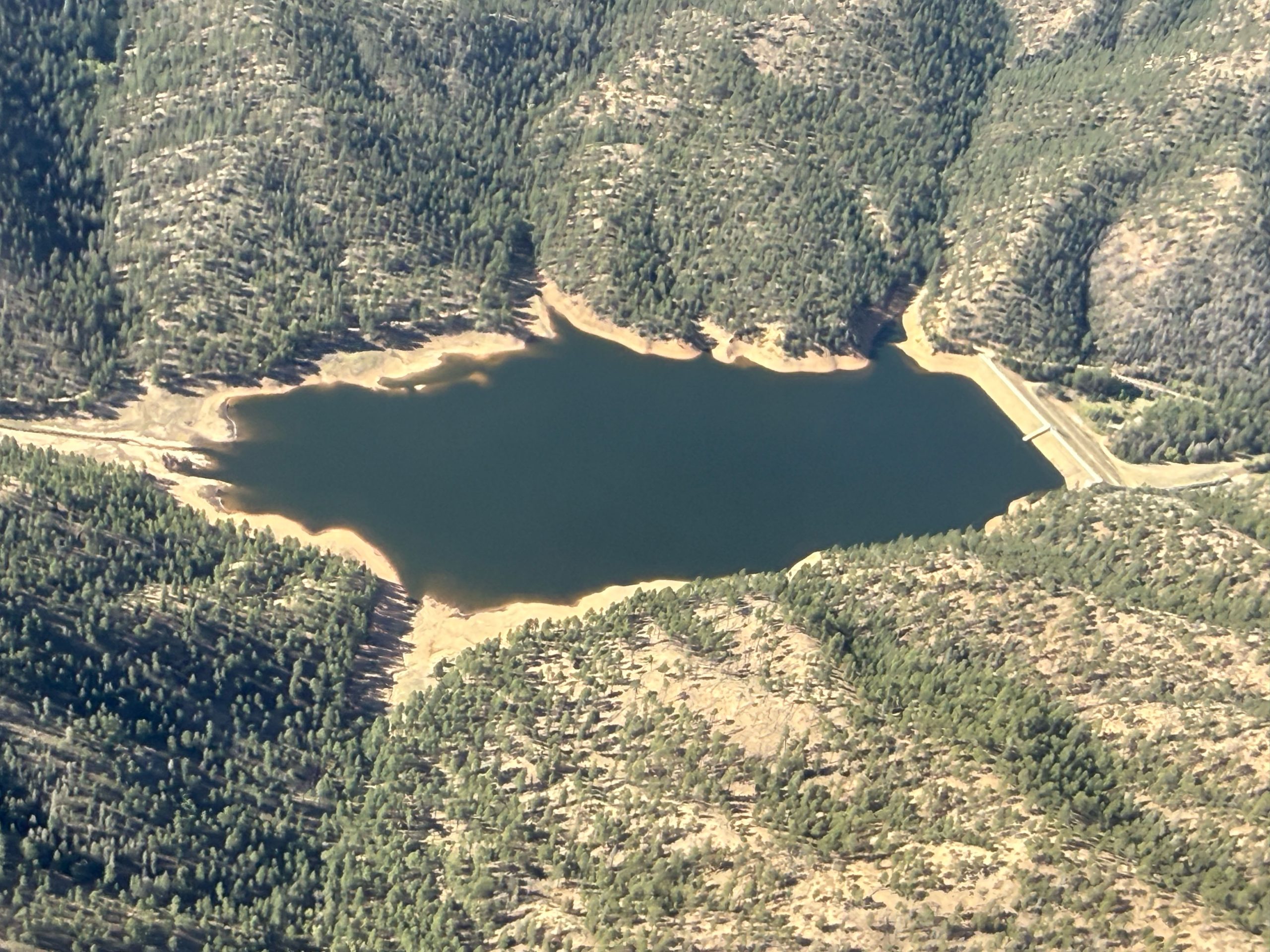 Santa Fe’s McClure Reservoir from the air, illustrating how closely upstream landscapes and downstream water supplies are connected.