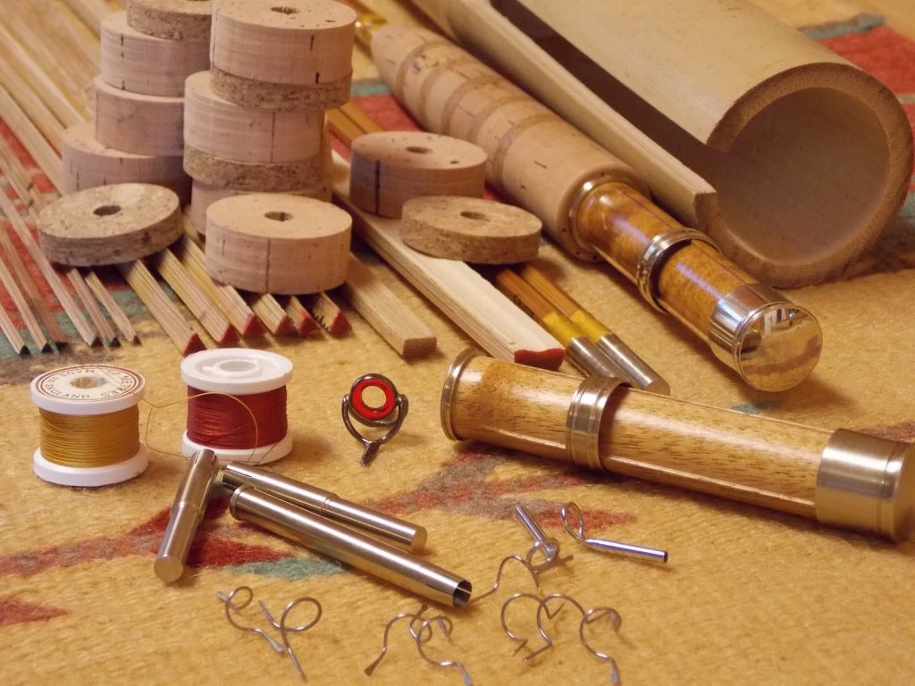 Bamboo rodmaking is a meticulous craft—each rod begins as raw materials and is shaped, fitted, wrapped, and finished by hand.