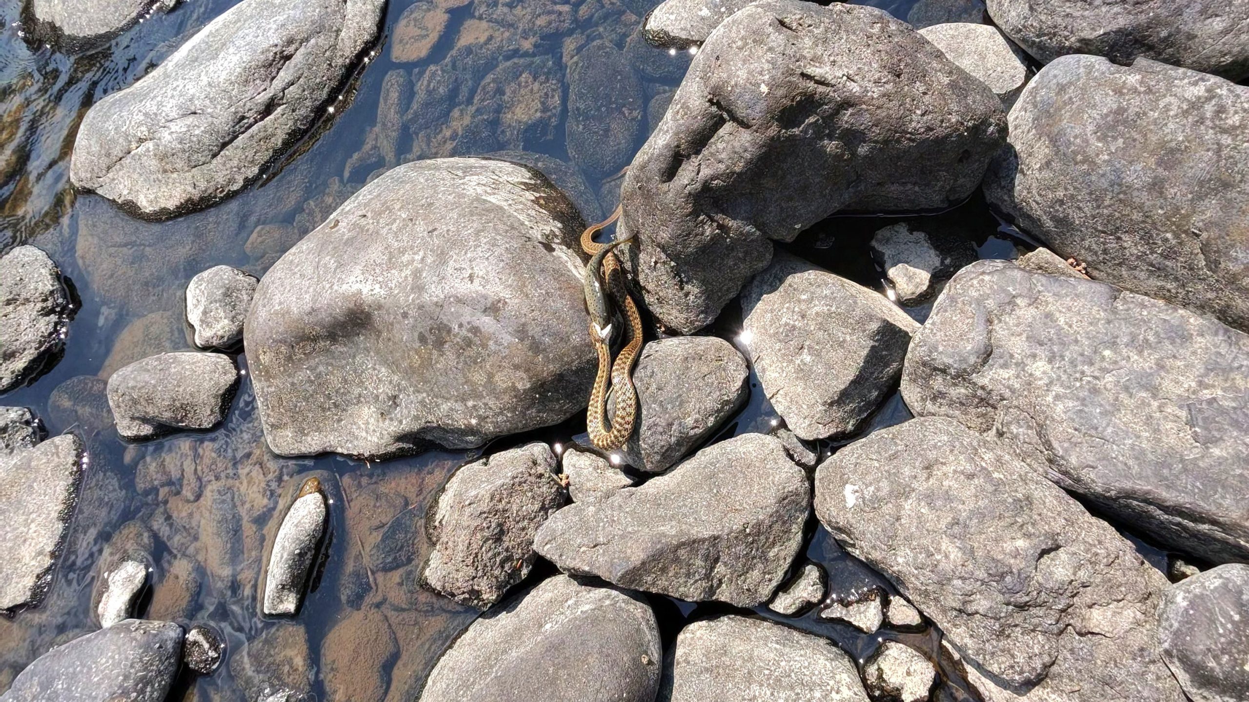 The second came just as I entered the Rio from the bank. As I walked along the rocks protruding from the shallow water I stopped and did a double take. I saw the snake first but then was amazed to see something that appeared to be twice its width in its mouth. Upon closer examination it was a rainbow trout that clearly wasn’t going to live to see my flies presented that day. I observed it for a moment, but judging by the size mismatch decided this snake would be working to consume this fish in a timeframe beyond my patience.